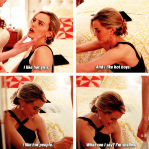 برای مثال در قسمت دهم فصل اول میگوید: «من دخترهای سکسی رو دوست دارم. پسران سکسی رو هم دوست دارم. خب، من آدمهای سکسی رو دوست دارم» و ادامه میدهد: «چی بگم؟ من آدم سطحی ای هستم» و بدین ترتیب گویی یک دوجنسگرای ناراضی از به زبان آوردن نام گرایش جنسی خود را به تصویر میکشد. دوجنسگرایی پایپر نه تنها توسط دیگر شخصیتهای سریال بلکه توسط خودش نیز نادیده گرفته میشود. او این را در همان قسمت اول، با گفتن این که «من یک لزبین بودم اما الآن نیستم»، مشخص میکند. این دقیقاً همان جملهای است که معمولاً دوجنسگرایان و وجود دوجنسگرایی را انکار میکند. شخصیتهای همجنسگرای سریال، پایپر را «لزبین سابق» یا «دگرجنسگرای هوسباز» مینامند، در حالی که شخصیتهای دگرجنسگرای سریال او را یک «لزبین»یا همجنسگرا ( *Dyke) میخوانند. کال، برادر پایپر، تنها کسی است که در این میان سعی دارد دوجنسگرایی را تشریح کند، اما حتی او هم هرگز از واژه دوجنسگرا یا دوجنسگرایی استفاده نمیکند. در فصل یک، وقتی که لری نامزد پایپر میپرسد: « اون هنوز لزبینه؟» ، کال با هوشمندی پاسخ میدهد: «من فکر میکنم مشکل شماها اینه که میخواهید بگویید یک نفر دقیقاً یک چیزیه». گویا کال میخواهد برچسبهای گرایش جنسی را رد کند و قهرمان ما باشد، اما در انتهای فصل سوم وقتی که نِری، همسر کال فاش میکند که قبلاً درباره روابطش با همجنسهایش به وی دروغ گفته است، باز هم هیچ کدام از واژه دوجنسگرا استفاده نمیکنند. این گفتگویی است در صحنهای که نری در تلاش است مادهای با رنگ و بوی ترشحات واژن بسازد.