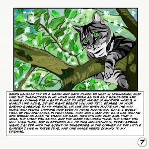 Birds usually fly to a warm and safe place to nest in springtime, just like the characters in my head who from as far as I remember are always looking for a safe place to nest...