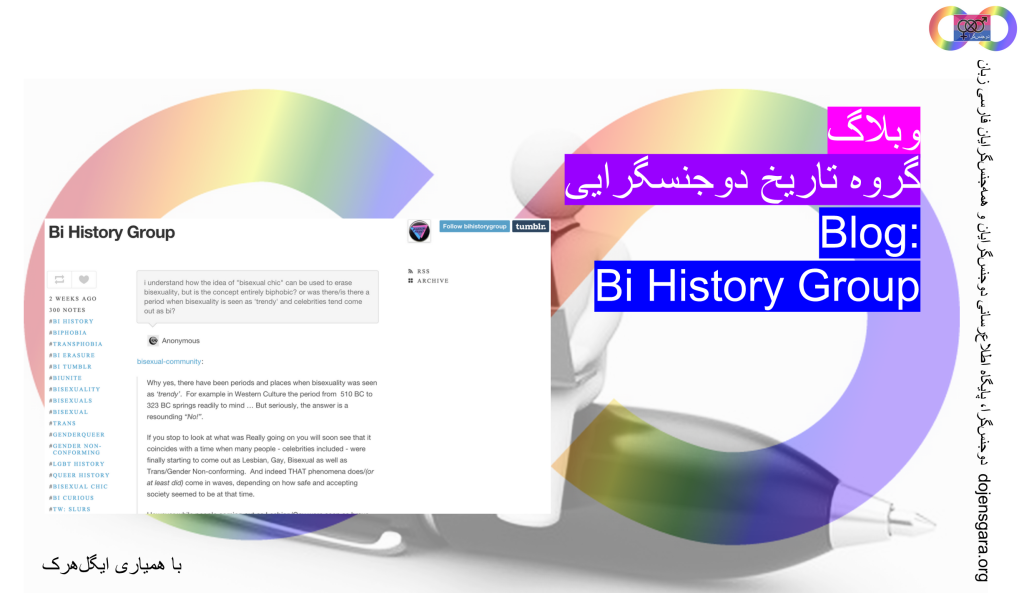 وبلاگ گروه تاریخ دوجنسگرایی به بررسی اسناد مبارزه دوجنسگرایان در دهههای گذشته در کشورهای غربی به خصوص آمریکا میپردازد.